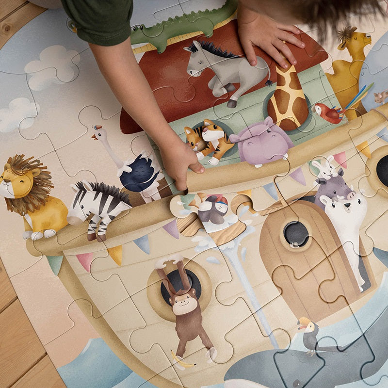 Het klinkt als een geweldig spel om de fantasie van je kleintje te stimuleren. Het puzzelen zelf biedt een goede gelegenheid om te praten over Noach, de dieren en waarom zij samen in de ark zaten.